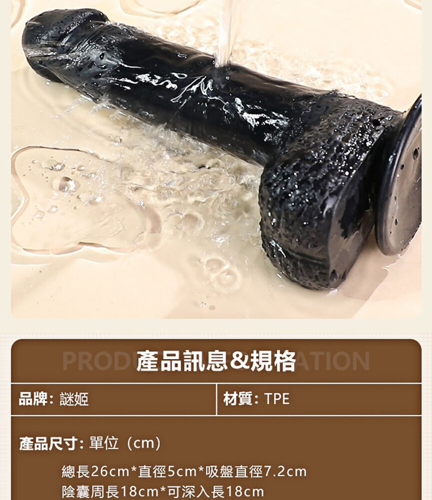 用途:女性自慰之用 材質:熱塑性彈性體 規格:手動型/大 淨重:約320g 總重:約378g 尺寸:長26x寬7x深9.4cm,直徑約5cm 可深入約18cm,吸盤徑約7.2cm 外盒尺寸:22.5x9.5x7.8cm 產地:中國