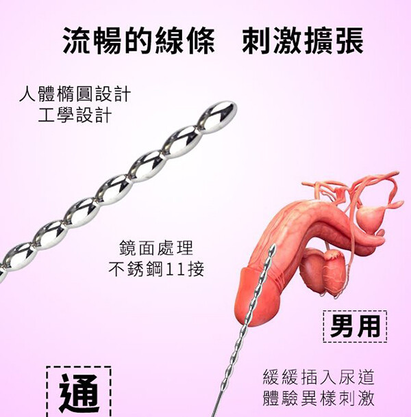 ※ 流暢的線條,厚實的金屬質感型,嚴格的加工每個零件。 ※ 不傷尿道,但請要適度的使用。 ※ 要伸入尿道(馬眼)前請務必先用稀釋酒精消毒用品。 ※ 建議搭配潤滑液塗抹棒身來使用,增加爽滑刺激感。 ※ 此產品詳細說明及樣式如圖所拍攝,敬請參閱選購。