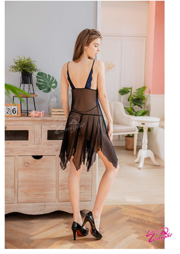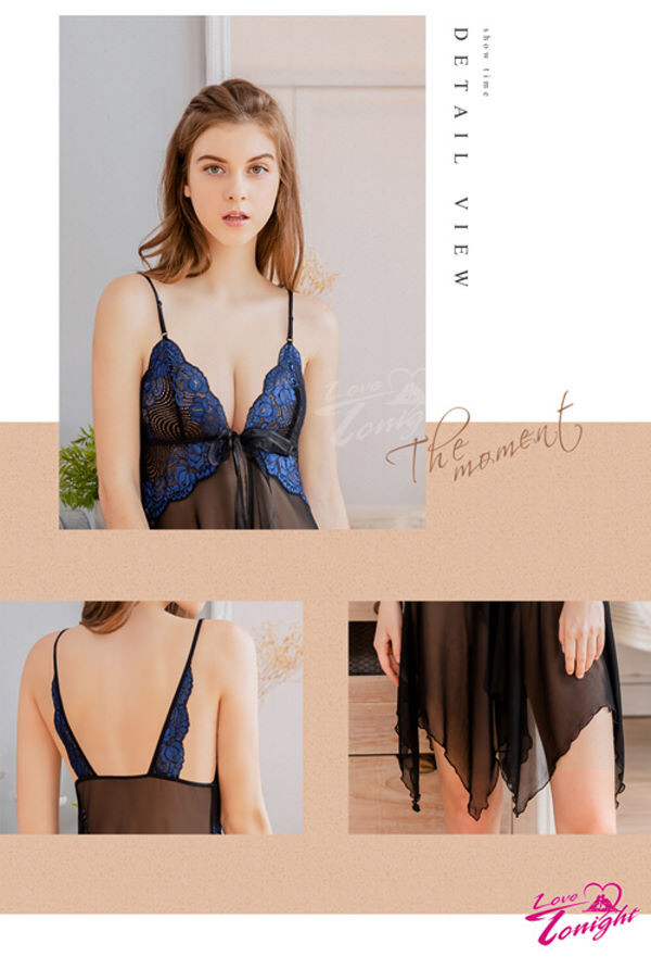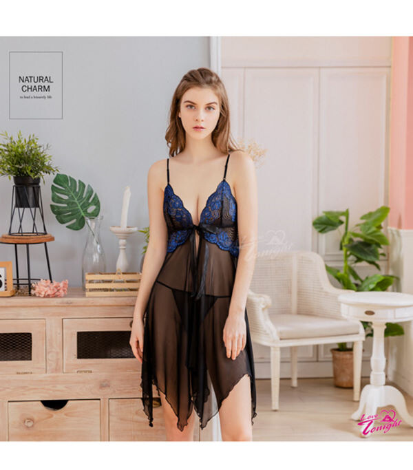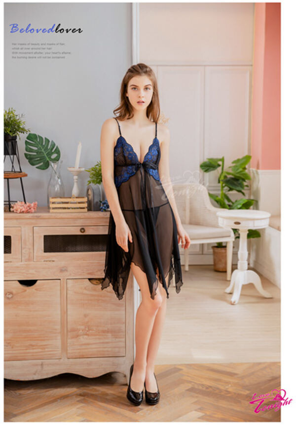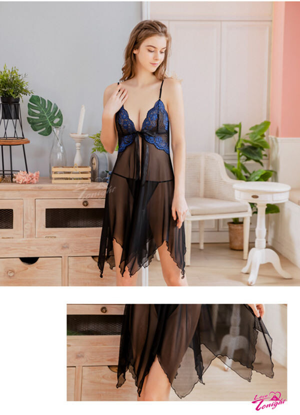 一襲魅惑黑色系薄紗睡衣,