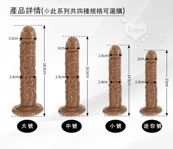 小戰士系列擬真按摩棒,採用頂級TPR材質熱塑而成,軟硬度適中,不會過硬而讓使用者使用時感到不適,也不會太軟,是經過市場問卷調查後採用最多數女性可以接受的軟硬度而設計,而外型連老二上的皺摺與爆筋都完整的重現,此系列共有4種規格,本站特別推薦它非常適合少女或私處窄小者來使用哦!。
