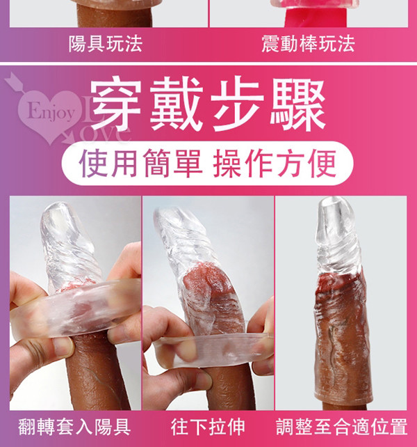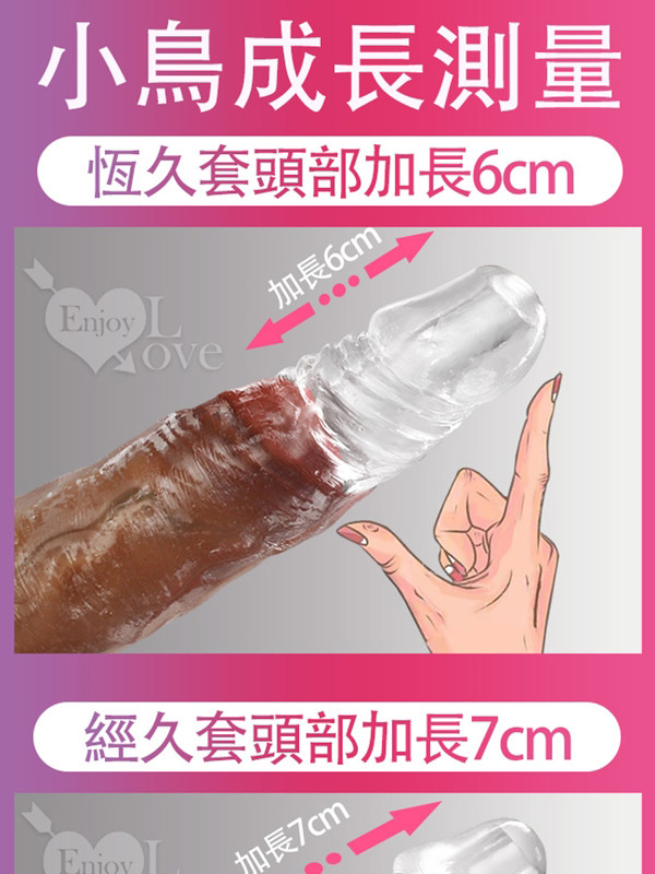 本品有別於一般加強套,除整體仿真度及觸感極優外,它厚度足足有0.5公分可輕易讓您的弟弟加粗2公分及增長6公分以上,而且整支都是透明色,不仔細看猶如隱形一般,無形之中給女性一種真實粗壯的感覺,深入陰穴裡那湧漲滿足感,她再也不會意猶未盡了