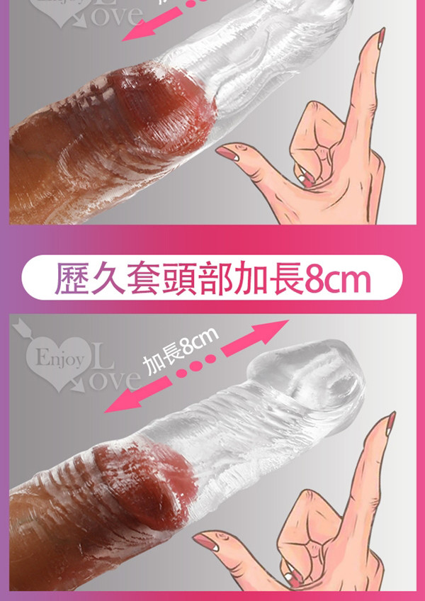 ※ 溫馨建議:穿戴此產品時先捲起來像保險套的使用一樣.然後在加長套上先塗抹少許潤滑液會讓女性更舒服哦!