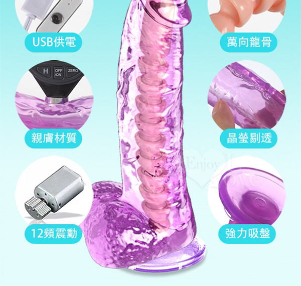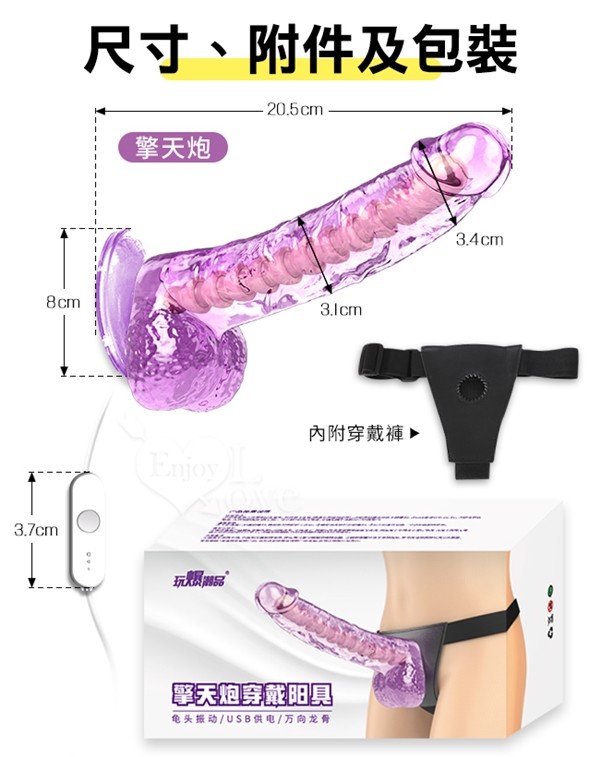 取悅‧Sky Cannon 擎天炮 女同拉拉穿戴吸盤透明紫陽具﹝12頻震/USB供電/可調整龍骨﹞