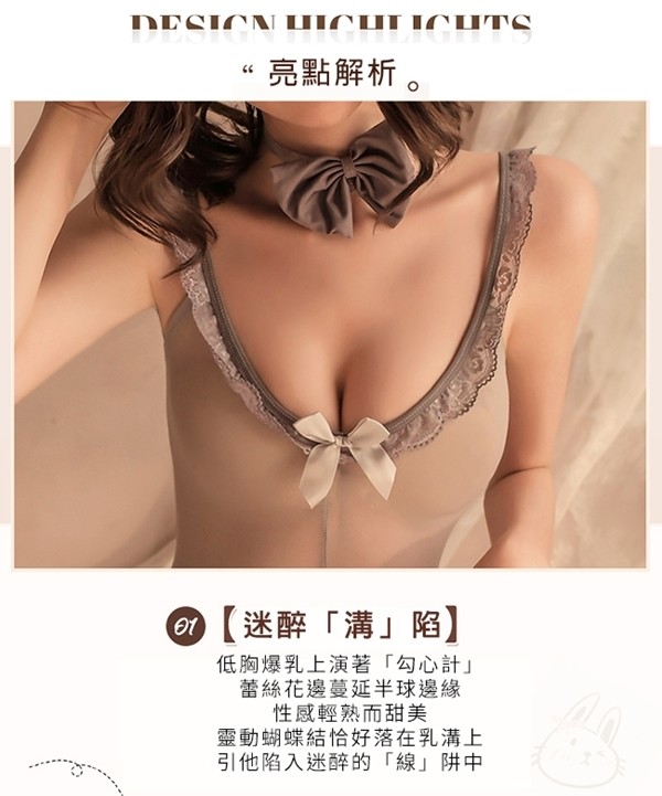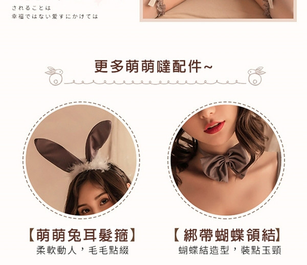 兔女郎服!低胸圓領木耳花邊薄絲吊襪帶性感露臀五件式套裝-含絲襪 角色扮演 情趣用品