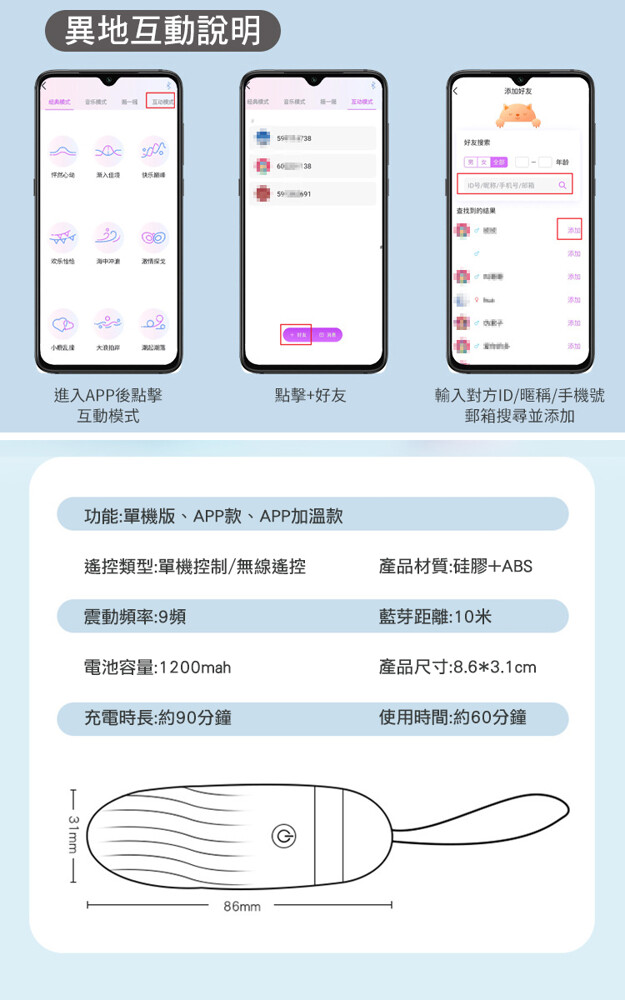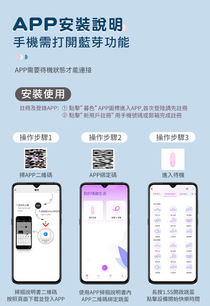 包裝內容物:外盒x1、跳蛋x1、DC充電線x1、說明書x1