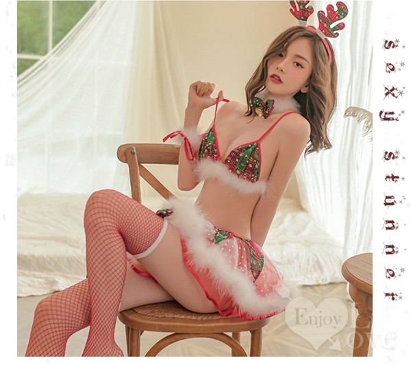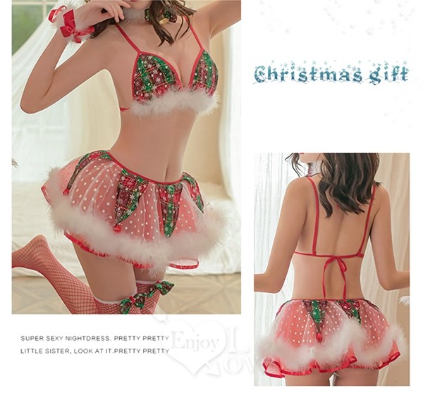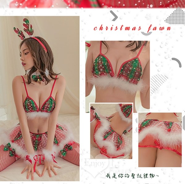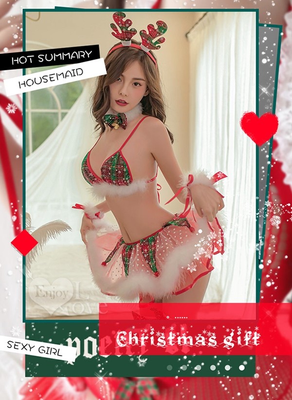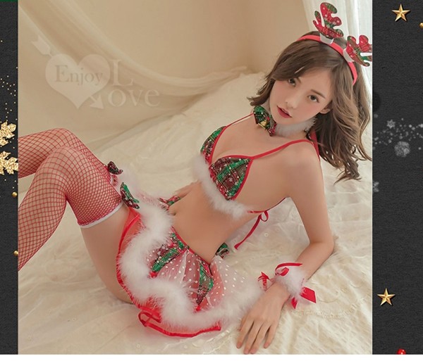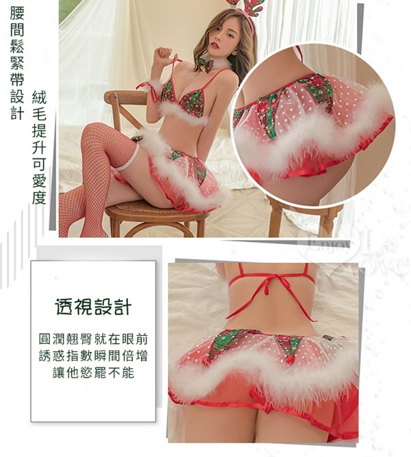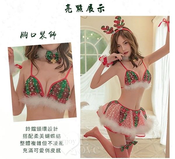 ※ 商品內容:麋鹿髮箍+鈴鐺頸環+比基尼+手環*2+蓬蓬裙+丁字褲+網襪。