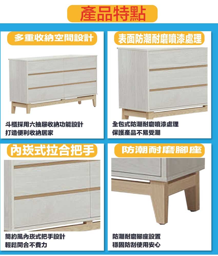 【綠家居】歌斯4尺六抽斗櫃 淺橡雙色系+安心材質製造,使用放心+搭配居家更便利,採用防蛀木心板+防潮耐磨腳座+五金滑軌結構等安心材質製造 ,外層採用防潮耐磨噴漆處理搭配採用六抽屜+開放式桌面等收納空間設計,全由專人配送到家,專業安心服務,替你省下更多時間!