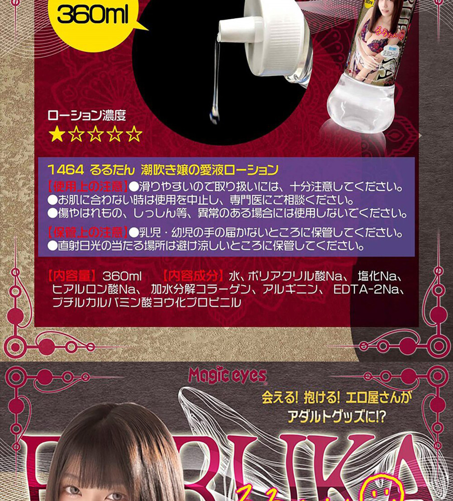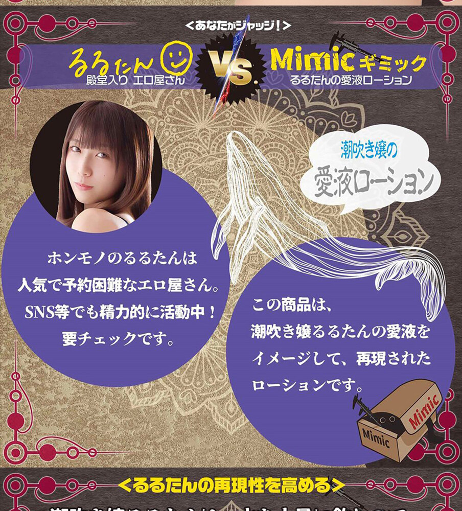 再現了潮吹少女愛液乳液的低黏度和微鹹口感!配合同時發售的Mimic機關,大量使用的話,無論在哪裡都能享受和Rurutan一起玩耍的樂趣。 用途:用於肌膚潤滑 容量:300ml 總重:約387g 尺寸:19.5x7x7cm 保存期限:5年 生產商:株式会社 TMBC 產地:日本 注意:請保存於陰涼處